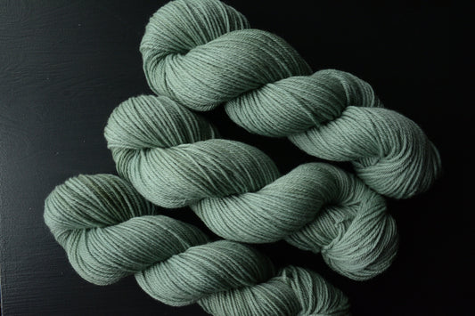 Sage Wisdom - 4-ply 100% non-super wash worsted weight merino yarn. 100g, 218 yards, mid sage green. Soft 20.5 micron. Semi-solid.